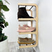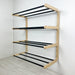 Сучасне, просте та функціональне доповнення до вашого інтер'єру.Організуйте простір вашого передпокою з максимальним розмахом та естетикою. Наша чотирирівнева настінна обувничка — це ідеальне поєднання природної теплоти світлого дерева та строгих графічних ліній. Завдяки вертикальному розташуванню ви зможете розмістити взуття всієї родини, зберігаючи підлогу вільною для легкого прибирання та відчуття простору.